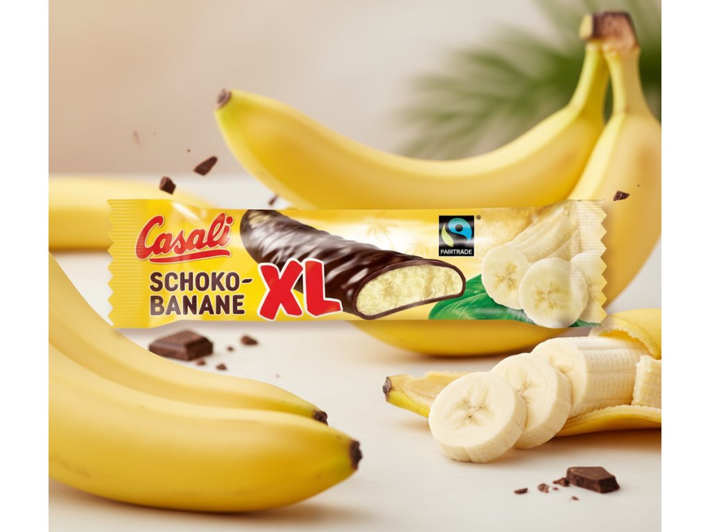 Jedna ostrovní legenda říká, že před dávnými časy zasel na čokoládovo - banánovém pobřeží zakletý plameňák semena banánů v čokoládě. Od té doby, zde vzkvétají klasické plody Casali, kterým se zde vyjimečně daří. Cítíš už tu chuť křupavé čokolády, rozplývající se na jazyku, s jemně ovocnými originálními banány? Fairtrade banány, cukr & čokoláda v náplni bez umělých barviv a konzervantů s kakaem z vlastní pražírny v recyklovatelném obalu, který odráží ekologické myšlení.
