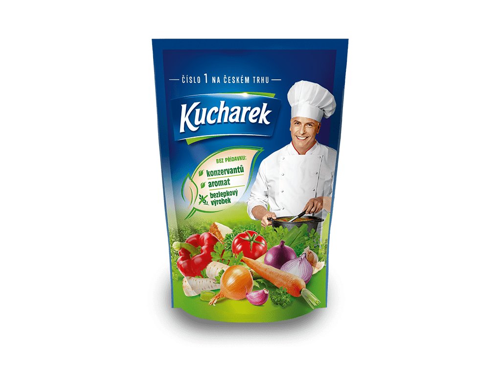 V zeleninovém ochucovadle Kucharek najdete bohatou směs jedenácti druhů oblíbené zeleniny jakou je mrkev, pastinák, cibule, celer, pórek, brambory, zelí, petržel, rajče, paprika a česnek. Mimo jiné obsahuje také sůl a koření, takže zkrátka vše, co potřebujete, aby vaše pokrmy získaly bohatou chuť a vůni. Neodolatelná vůně linoucí se z hotových jídel zaručeně přiláká ke stolu celou vaši rodinu.