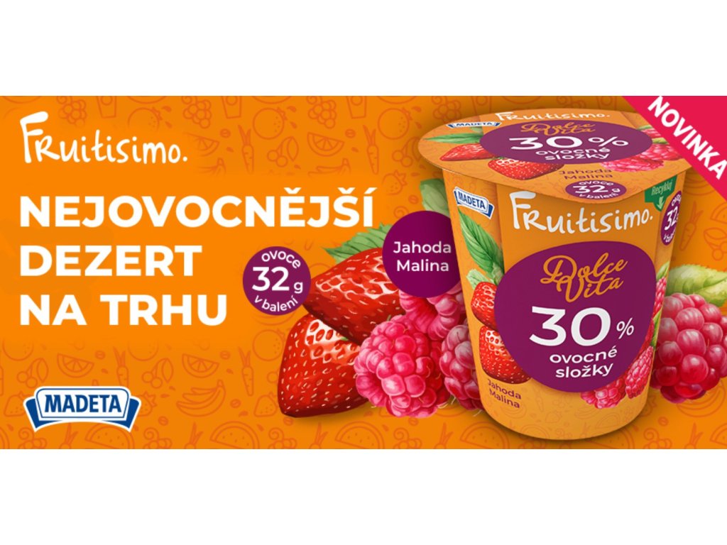 Madeta Fruitisimo dezert banán a borůvka 130g za 3 Kč.