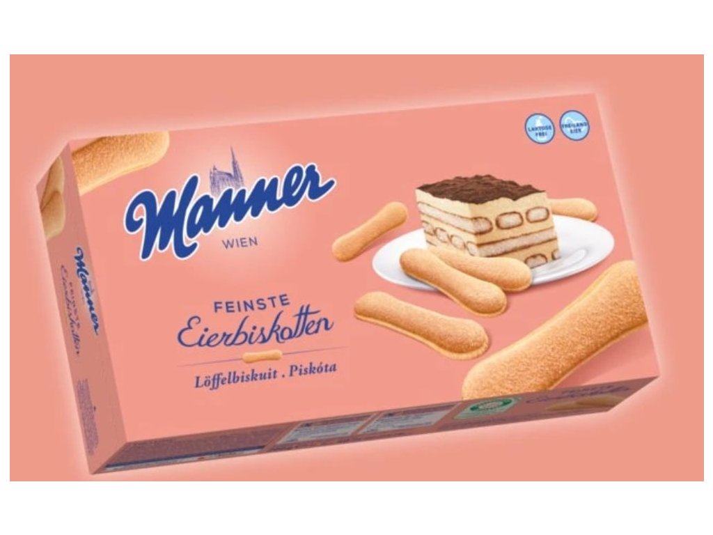 Vaječné piškoty, v Německu označované jako „piškot na lžičku“, patří ke klasice značky Manner. Nejjemnější piškotové těsto, lehce upečené, se zrnitou vrstvou cukru na povrchu. Kdo je měl jednou v kuchyni, ví, že piškoty Manner svádějí k mlsání již během přípravy! Při výrobě piškotů Manner používáme výhradně vejce z volného chovu.
