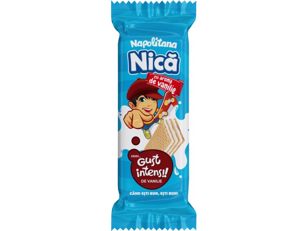 Složení: cukr, bílá pšeničná mouka, rostlinný tuk (palmový), kukuřičný škrob, sušená odstředěné mléko (1,8%), sušená syrovátka, emulgátor: sójový lecitin, kypřící látky: (uhličitan sodný, uhličitan amonný), přírodní vanilkové aroma, jódovaná sůl. Alergeny: lepek, sója, laktóza.