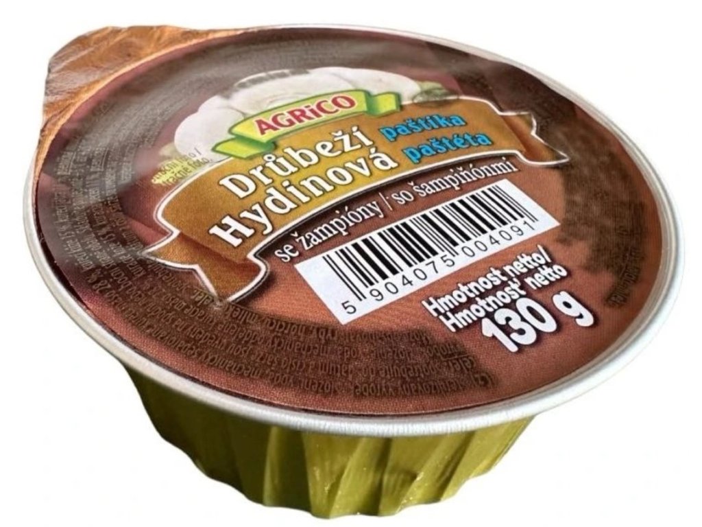 Paštika se žampiony 130g za 5 Kč.