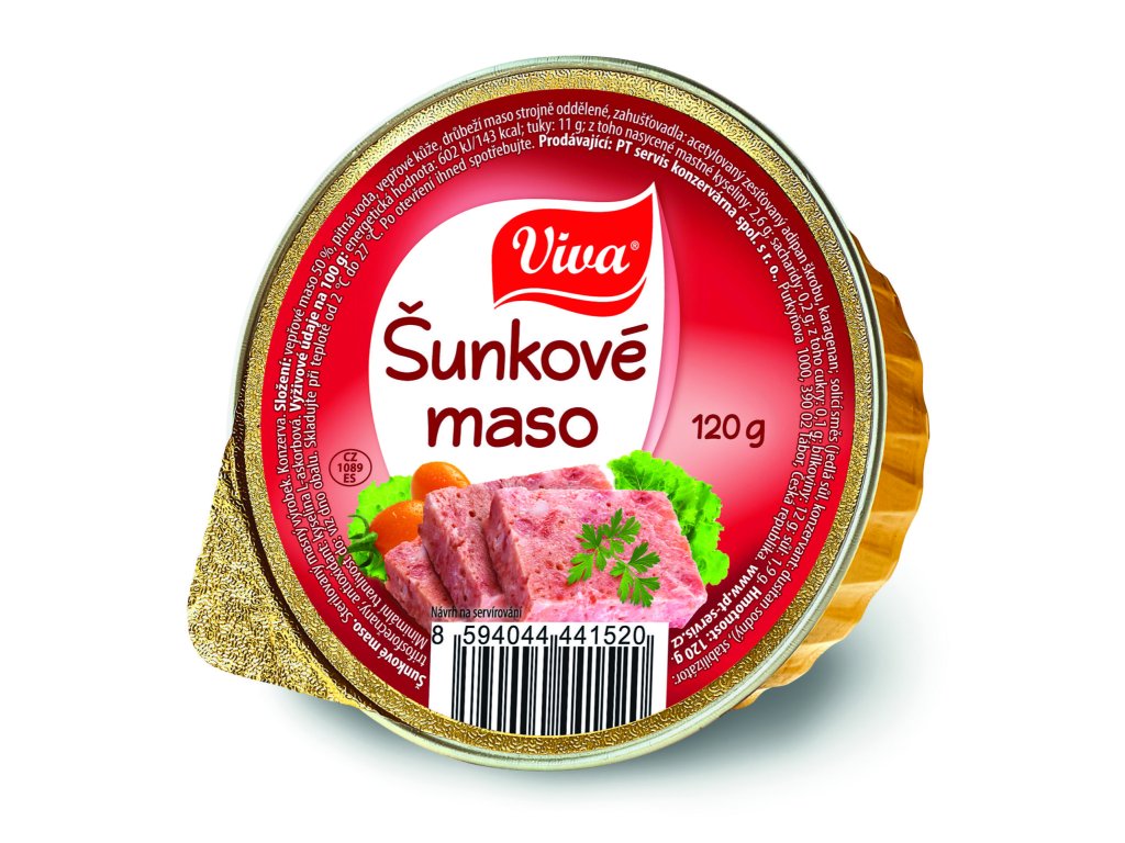 Vepřové maso 50%, pitná voda, vepřové kůže, drůbeží maso strojně oddělené, zahušťovadla: acetylovaný zesíťovaný adipan škrobu, karagenan; solící směs (jedlá sůl, konzervant: dusitan sodný), stabilizátor: trifosforečnany; antioxidant: kyselina L-askorbová.